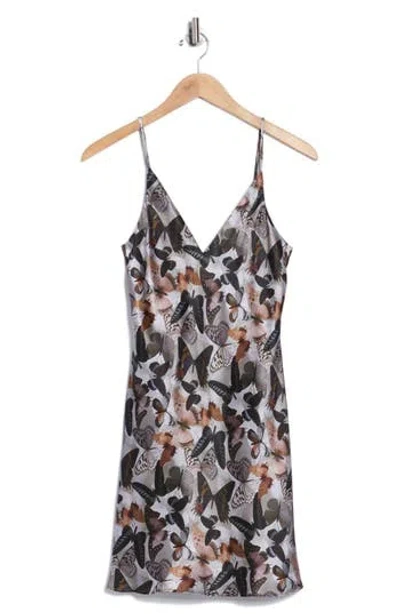 Zaria Raw Edge Trim Silk Mini Dress In Brown