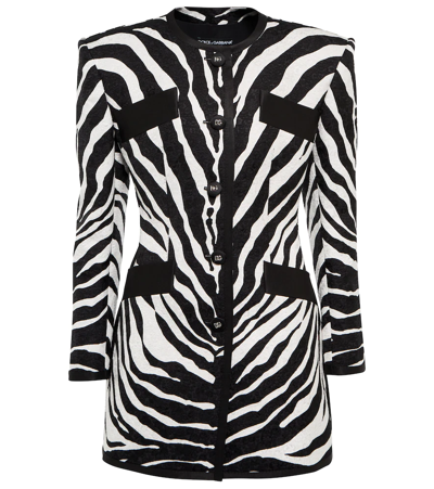 Zebra-print Strong Shoulder Brocade Jacket In Monochrome