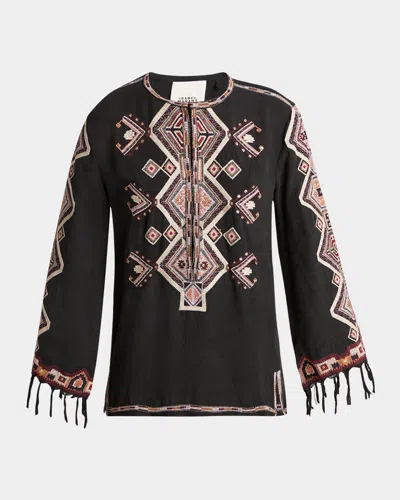 Zelly Embroidered Cotton And Silk-blend Blouse In Pink