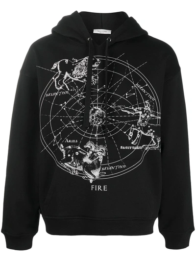 Zodiac-print Cotton-blend Jersey Hooded Sweatshirt In Nero