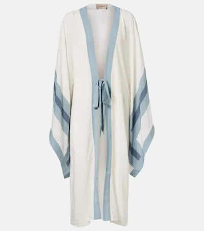 Orchidee Print Long Silk Kaftan In Multi