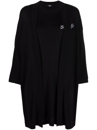 Embroidered-logo Cardigan And Dress Set In Black