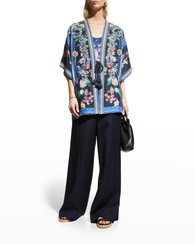 Leia Floral-print Embroidered Kimono In Multi