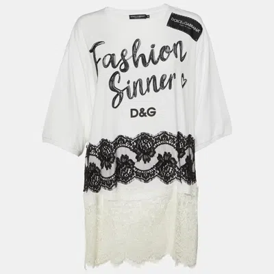 Pre-owned Monochrome Cotton Lace Trim Tunic M In White