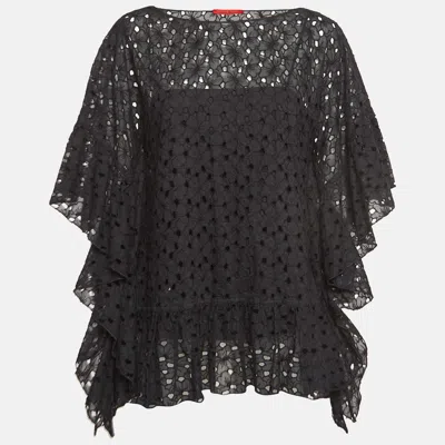 Pre-owned Black Floral Lace Oversized Kaftan Top Xs