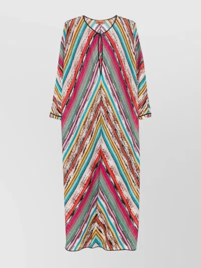 Zickzack-kaftan Mit Pailletten Und V-ausschnitt Und Abnehmbarem Schal Mit Fransen In Multicoloured