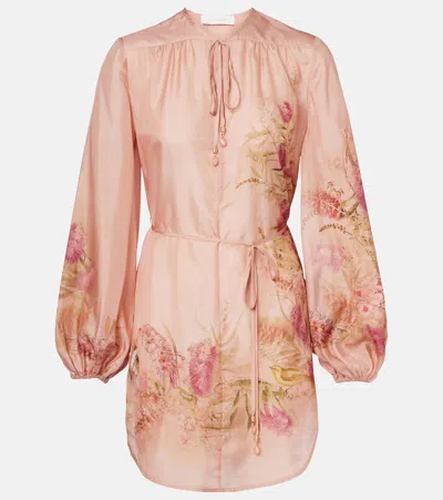 Short Printed Silk Kaftan With Wide Sleeves In Multi