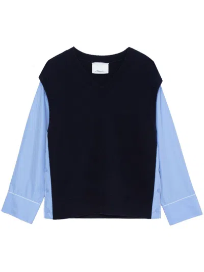 Vest-layered Cotton-blend Poplin Shirt In Blue