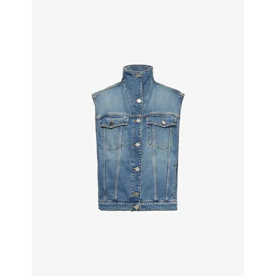 Womens Alaia High-neck Faded-wash Regular-fit Denim-blend Vest In Bleu Vintage