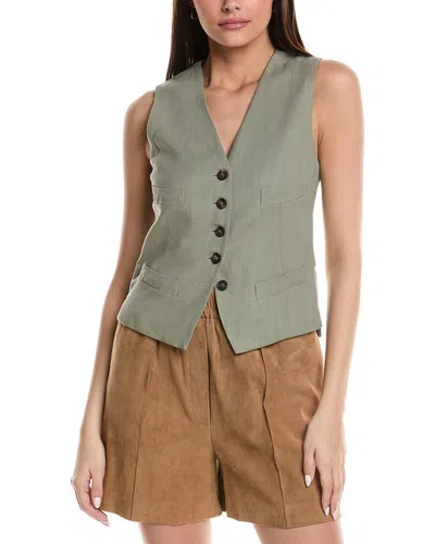 Fitted V-neck Sleeveless Vest With Front Pockets In Beige