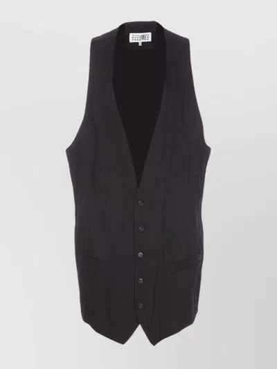 Flax Blend Buttonless Vest With Raw-cut Details In Grey