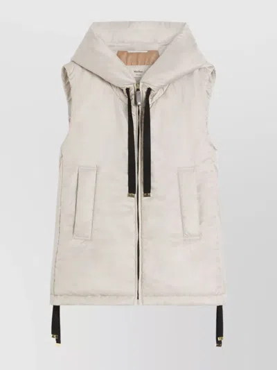 Flared Sleeveless Water-repellent Canvas Hooded Gilet In Neutral