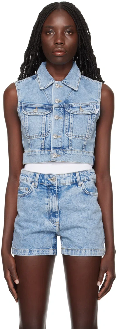 Blue Faded Denim Vest In A1295 Fantasy Blue