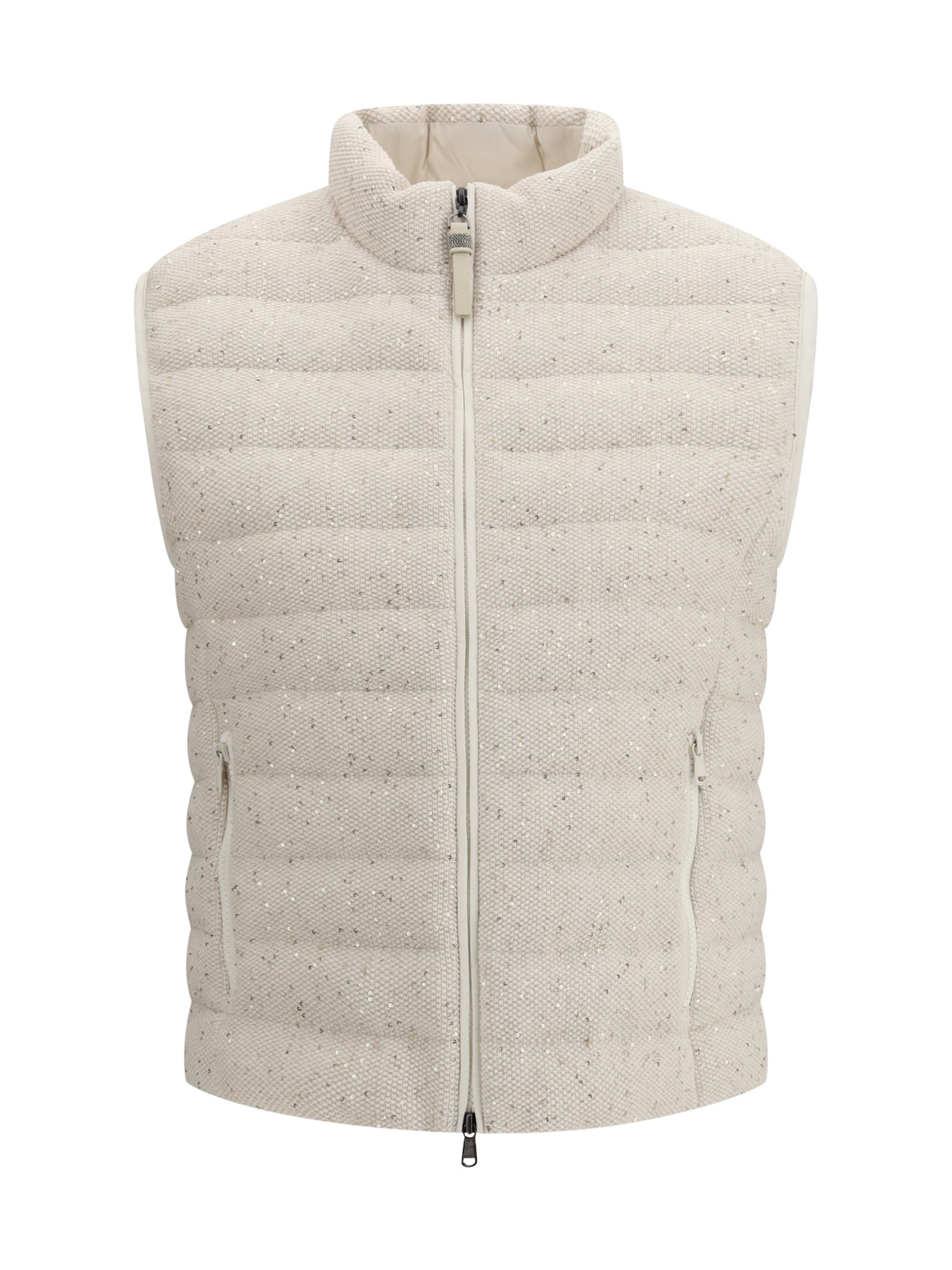 Sequin Embellished Zipped Gilet In White