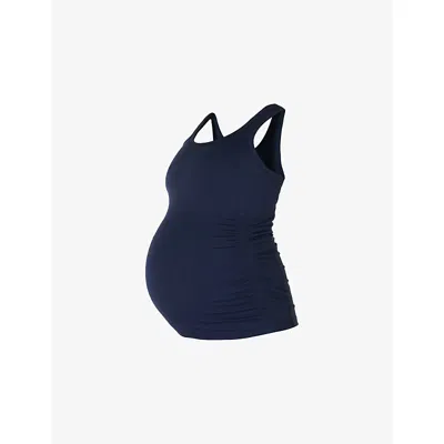 Womens Navy Blue All Day Maternity Scoop-neck Stretch-woven Vest