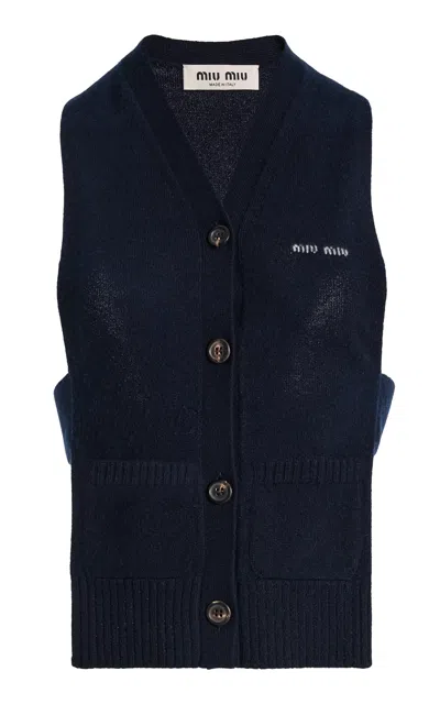 Womens Cable-knit Logo-embroidery Cotton Knitted Vest Hunter Navy