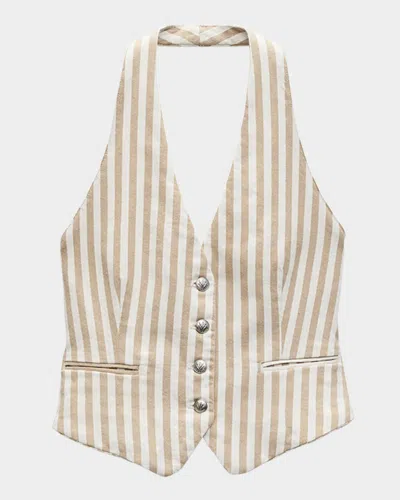 Cropped Bead-embellished Pinstriped Linen-blend Vest In Panama