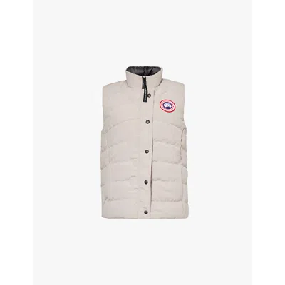 Womens Funnel-neck Brand-patch Shell Gilet Limestone