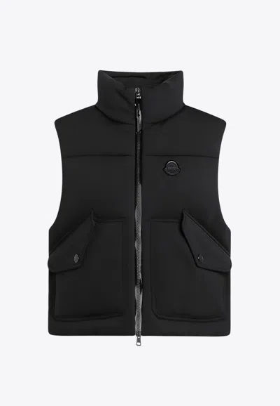 Quilted Vest-style Cardigan With High Neck And Feather Padding In Black