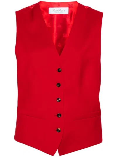 Maxmara Selva Wool Gabardine And Satin Waistcoat In Neutral