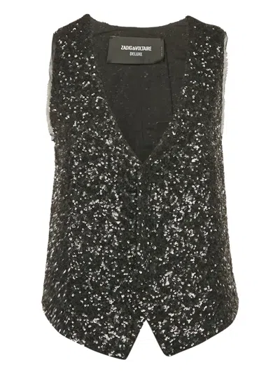 Pre-owned Black Sequin Button Front Emilie Waistcoat M
