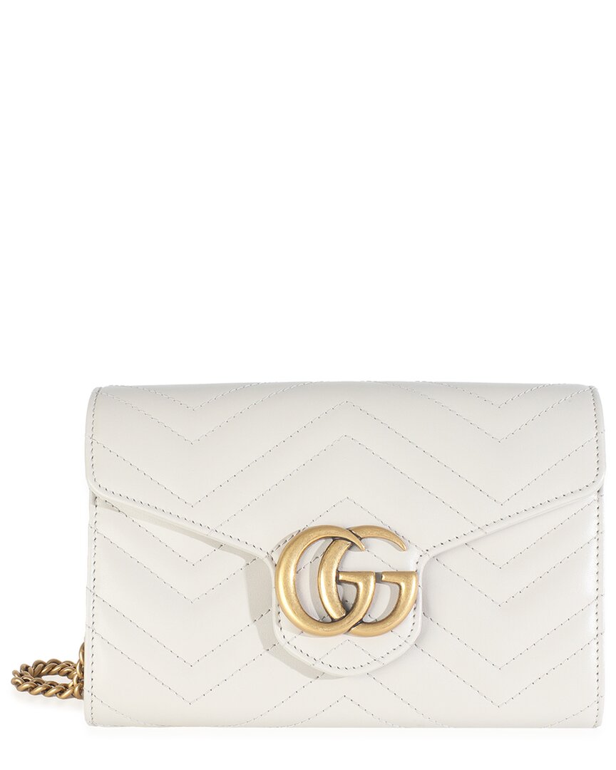 Gray Matelasse Calfskin Gg Marmont Chain Wallet (authentic Pre-loved) In White
