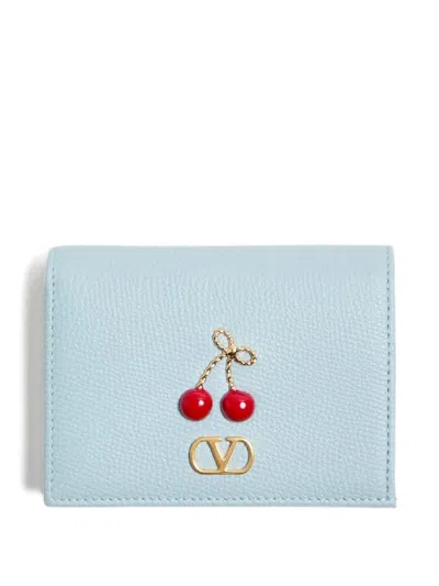 Valentino Rockstud Spike Leather Wallet On Chain In Blue
