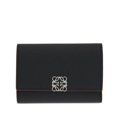 Anagram Trifold Wallet Pebble Grain Calfskin In Black