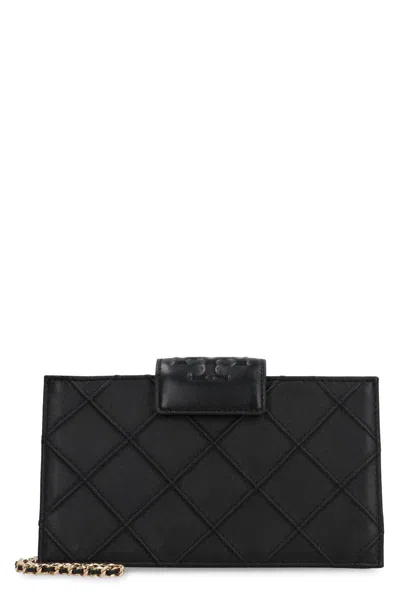 Black Lambskin Leather Micro Shield Wallet On Chain