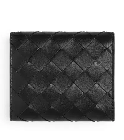 Leather Intrecciato Trifold Wallet In Gold