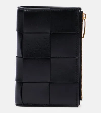 Womens Blush-gold Intrecciato Small Bi-fold Leather Wallet