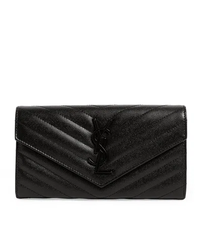 Uptown Ysl Wallet On Chain In Grained Leather In Black