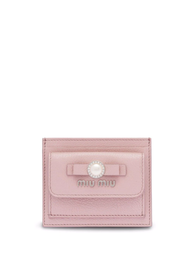 Leather Card Holder With Removable Key Ring In Pink