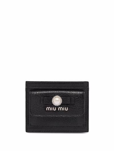 Logo Stamp Grained Leather Cardholder In Black