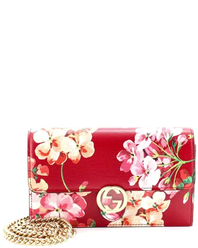 Red Sheep Leather Icon Wallet On Chain Blooms Print (authentic Pre- Loved)