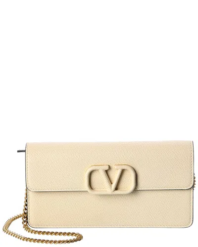 Valentino Vsling Grainy Leather Wallet On Chain In Neutral