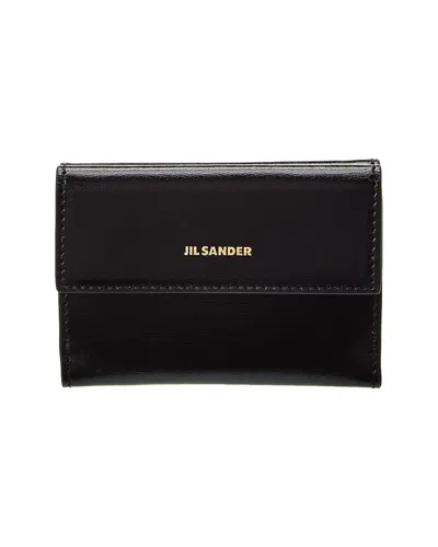 Logo Stamp Compact Wallet In Calf Leather In Black