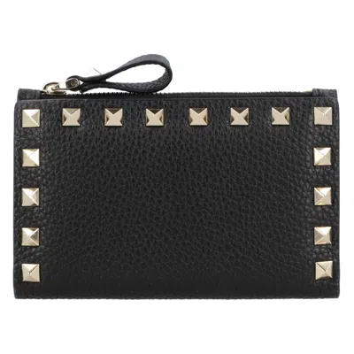 Valentino Rockstud Zipper Coin Card Holder In Black