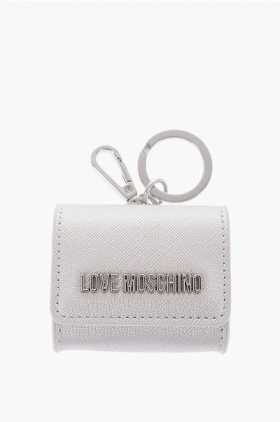 Love Saffiano Faux Leather Coin Purse With Key Holder In Neutral