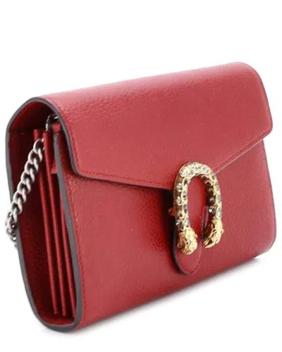 Leather Crystal Dionysus Chain Wallet (authentic Pre-loved) In Red