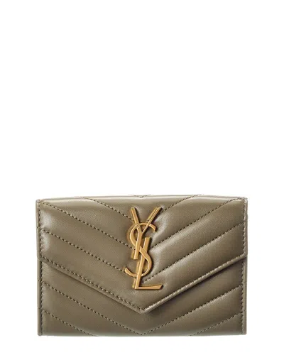 Ysl Monogram Small Flap Wallet In Grained Leather In White