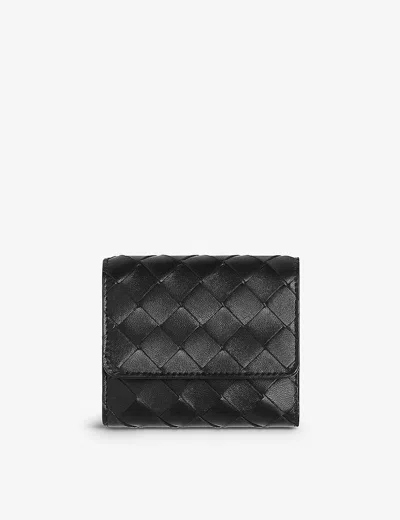 Womens Black-gold Intrecciato Leather Trifold Wallet