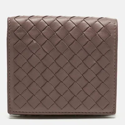 Pre-owned Grey Intrecciato Leather Zipped Coin Purse In Gray