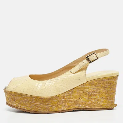 Pre-owned Yellow Snakeskin Leather Wedge Sandals Size 37