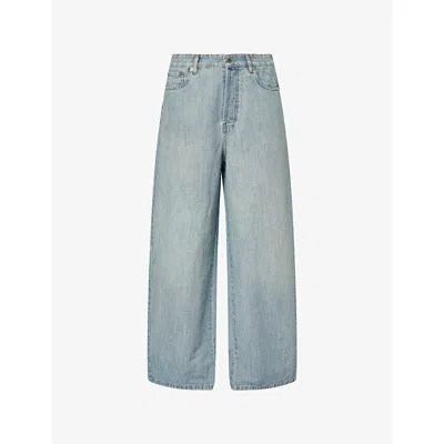 Wide-leg Overwashed-effect Jeans In Blue