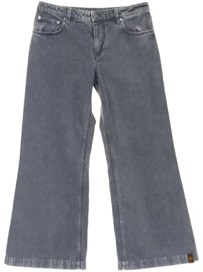 Pre-owned Grey Logo Embroidered Cotton Wide Leg Jeans M Waist 30" In Gray