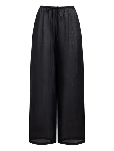 抽绳亚麻长裤