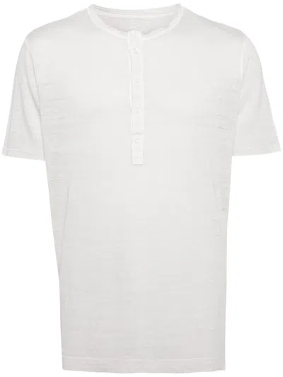 Button-placket Linen T-shirt In Grey