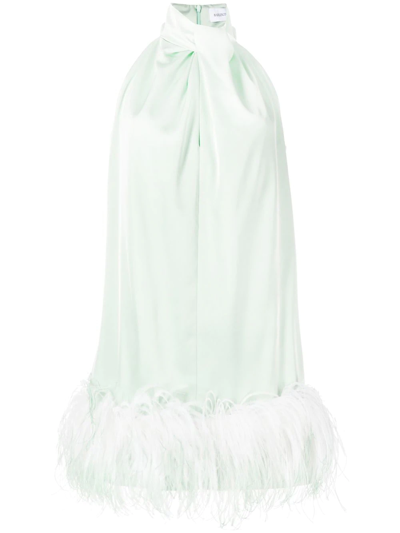 Umiko Feather-trimmed Satin Mini Dress In Neutral