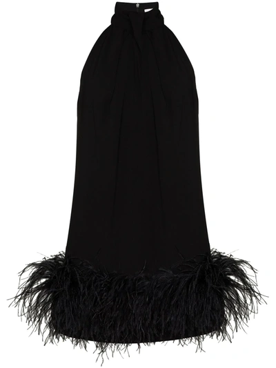 Cynthia Feather-trimmed Crepe De Chine Halterneck Mini Dress In Black
